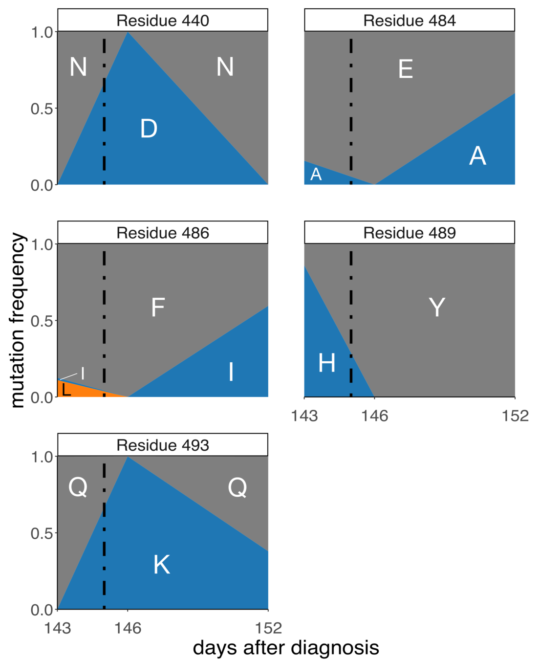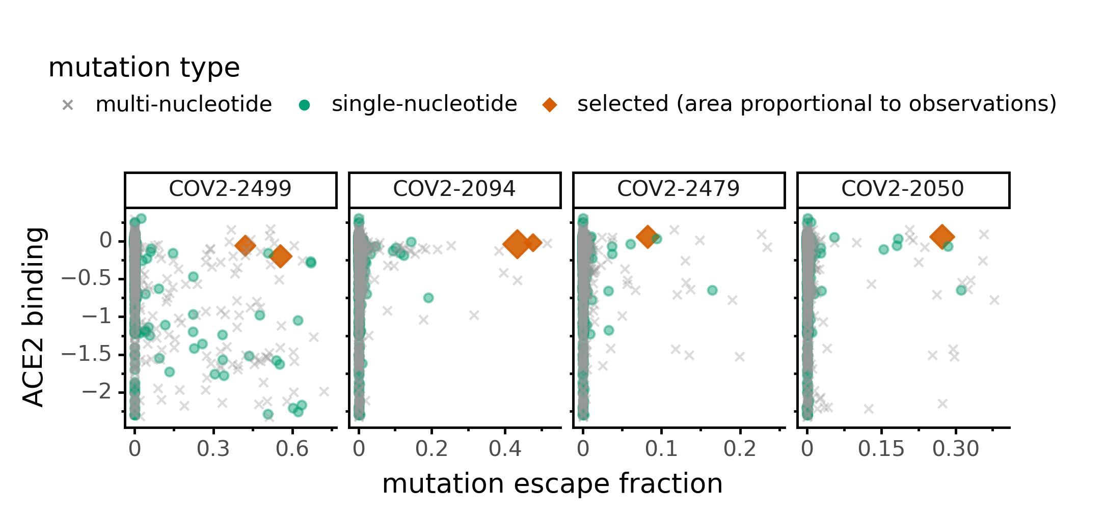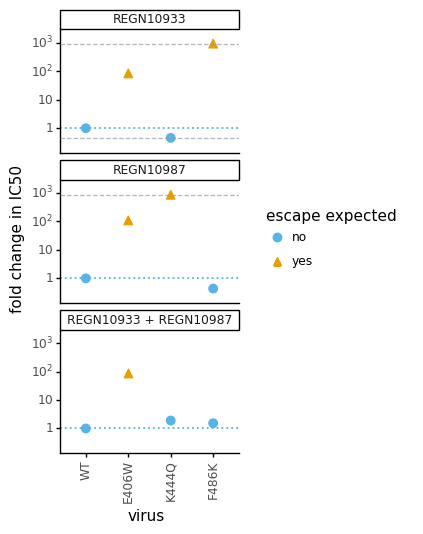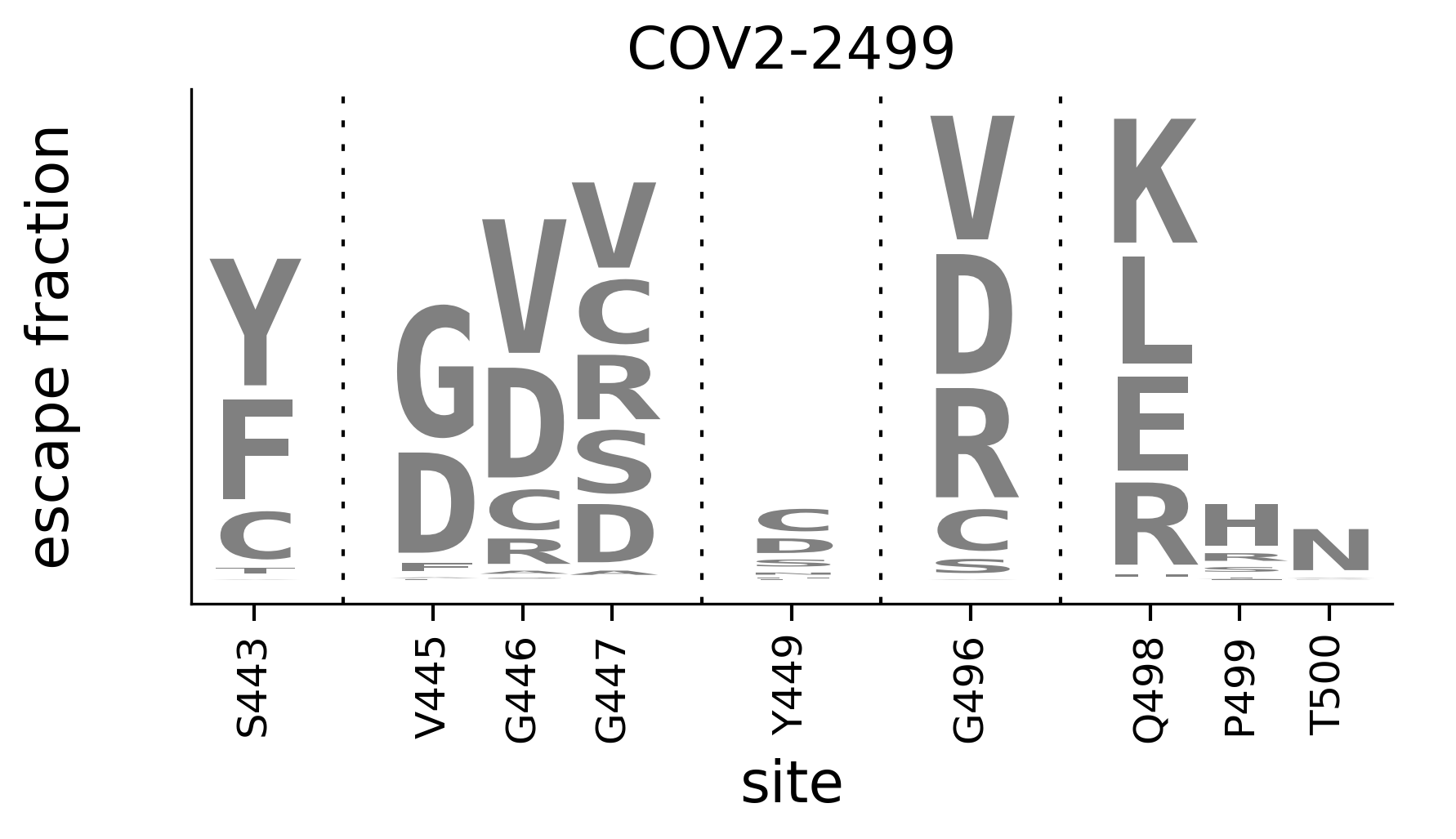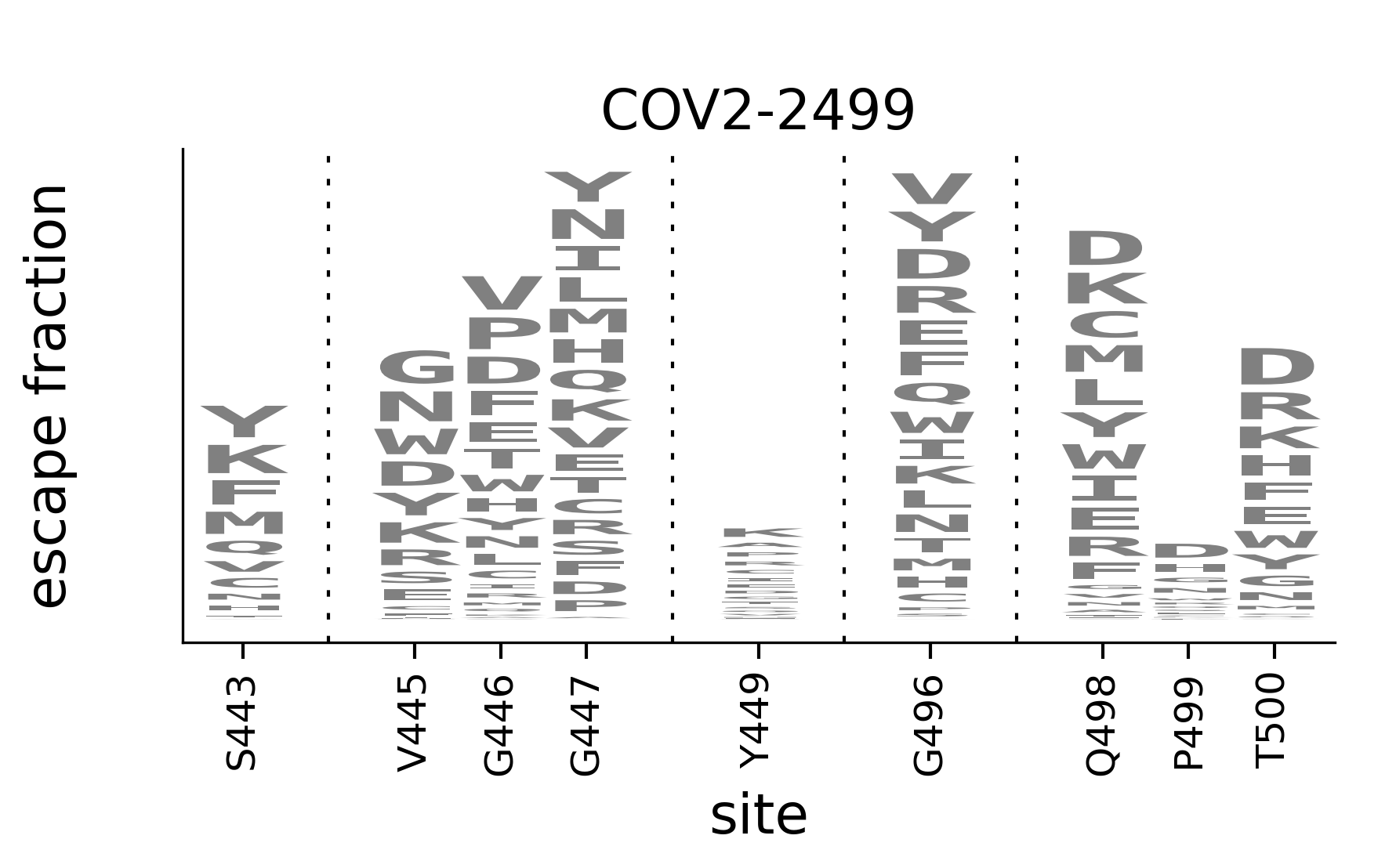 In maps, tall letters indicate strong escape mutations