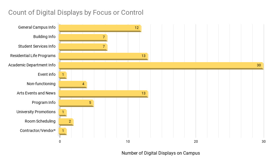 - Conduct an inventory of UMBC's public-facing digital displays (Summer, 2019)