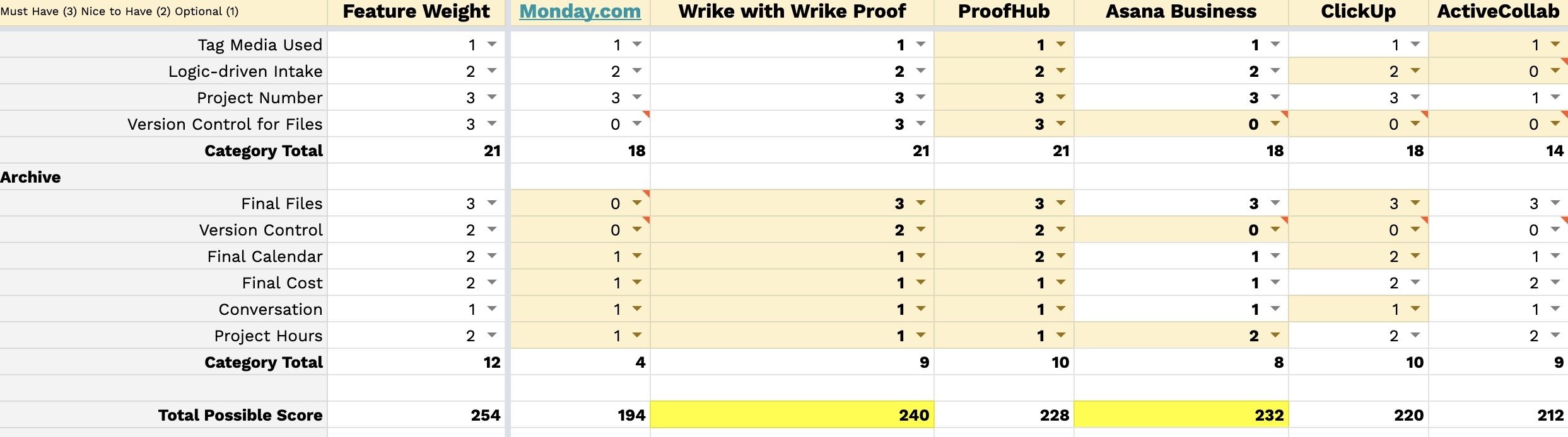 Break down features into categories and assign weight ☑️