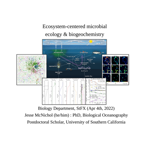 An introduction to my PhD and postdoctoral research on marine microbial ecology, and how I envision a research program developing at StFX with active participation from undergraduate, graduate, and postdoctoral researchers.