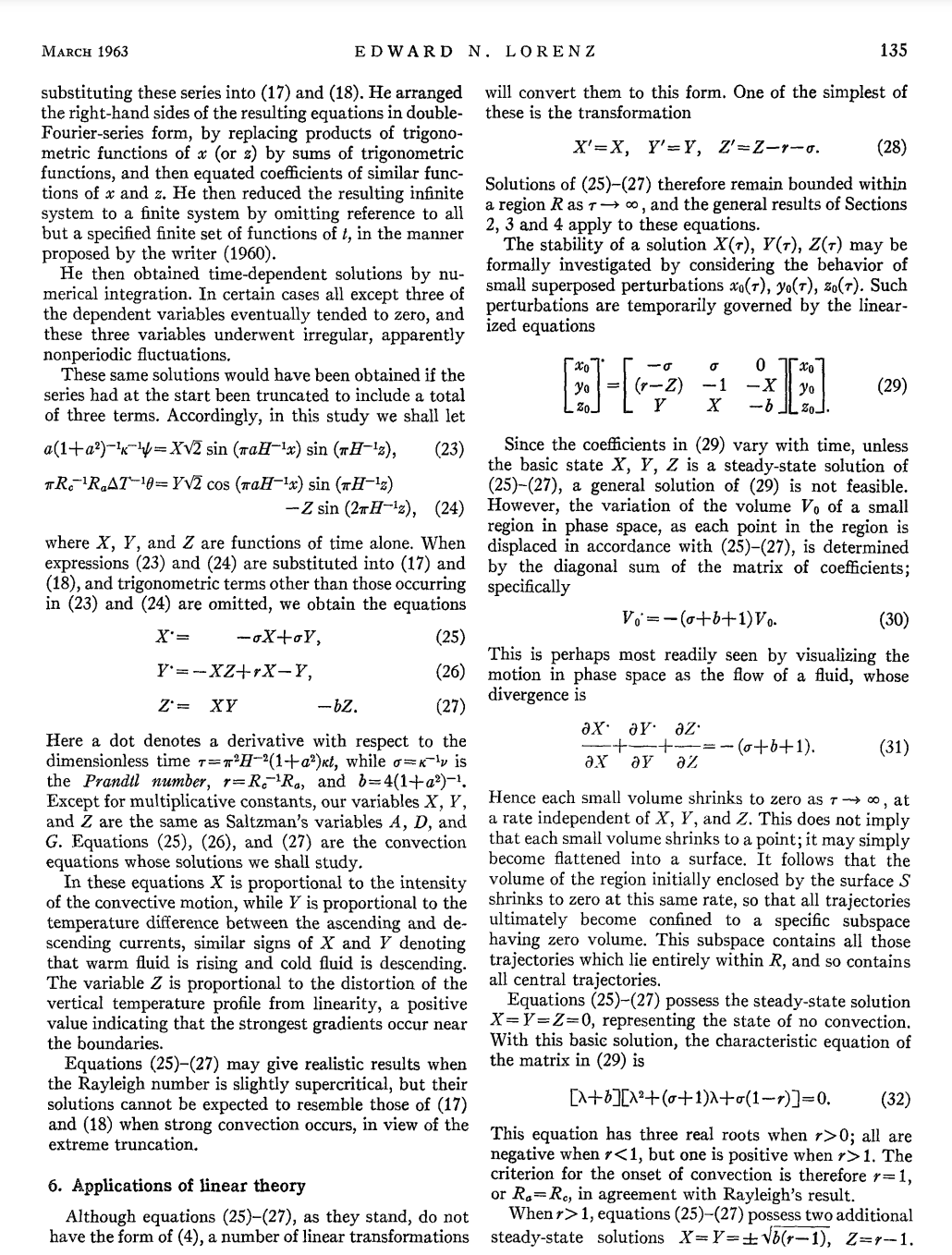 Lorenz E. N. (1963). Deterministic Nonperiodic Flow. Journal of the Atmospheric Sciences. 20(2): 130–141.