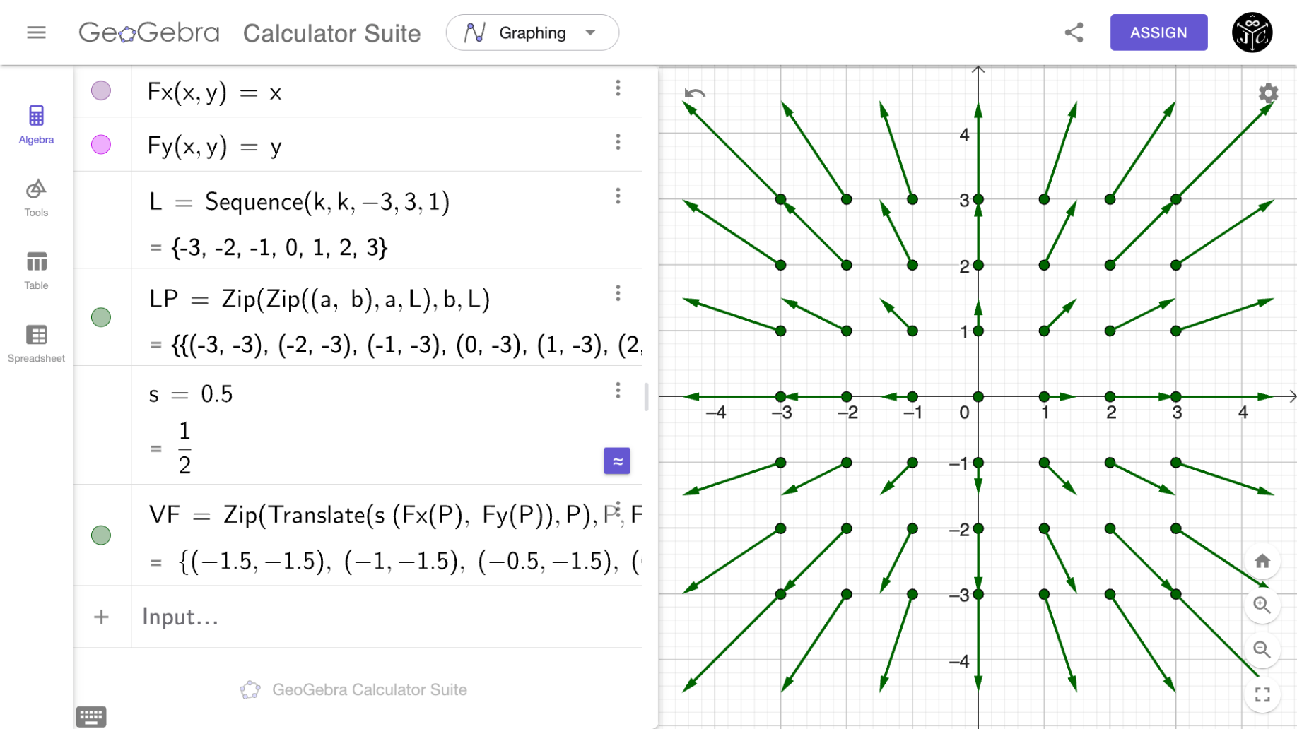 VF = Zip( Translate( s*(Fx(P), Fy(P)), P ), P, LP )Script 1