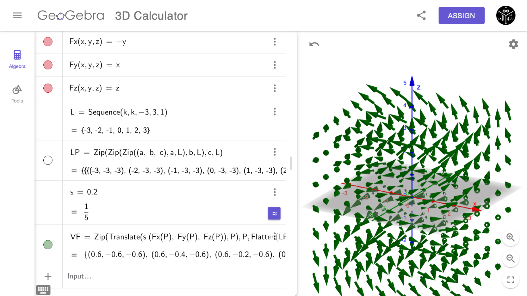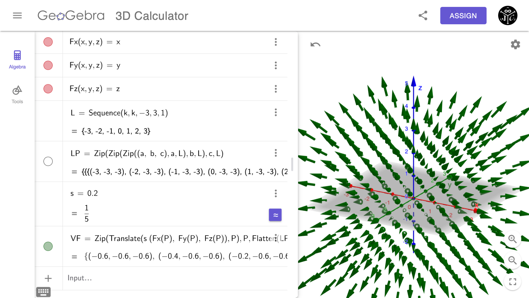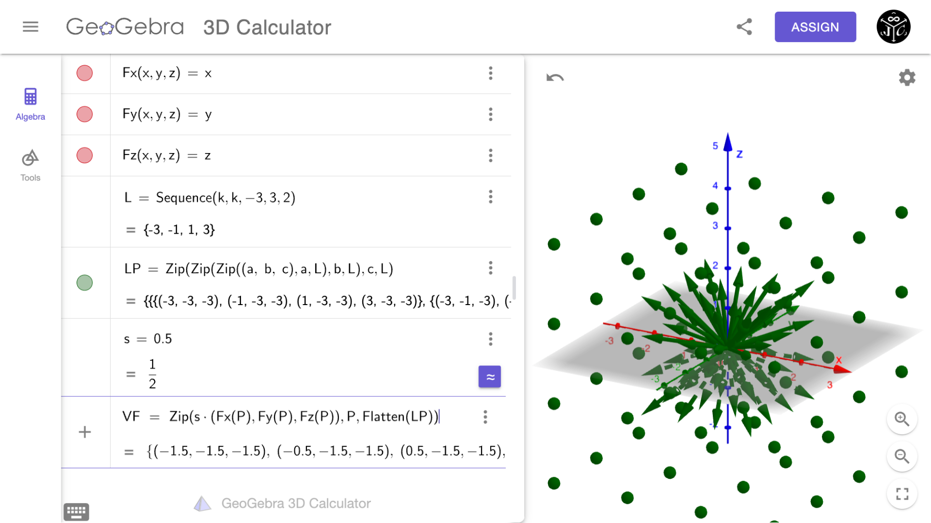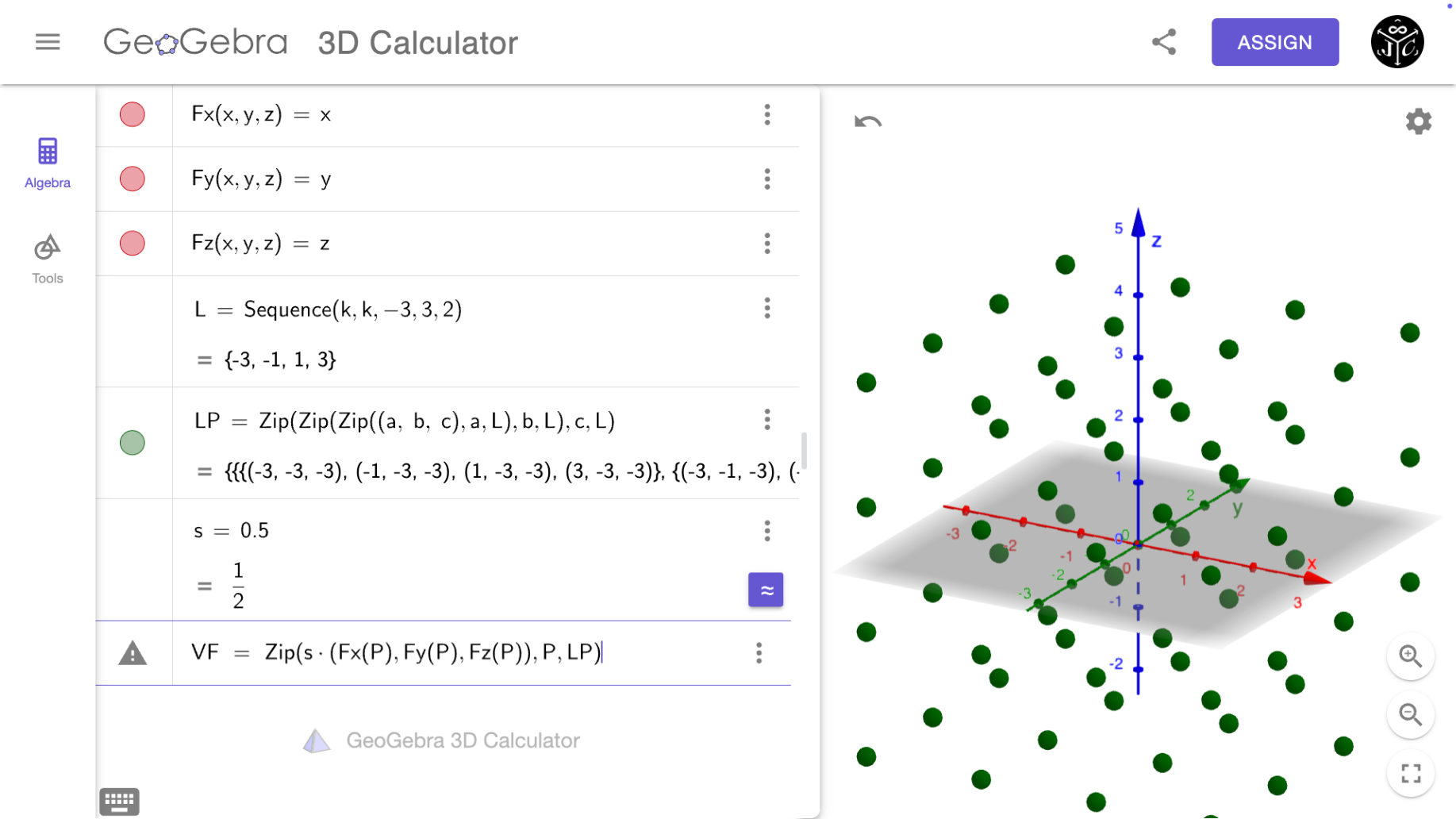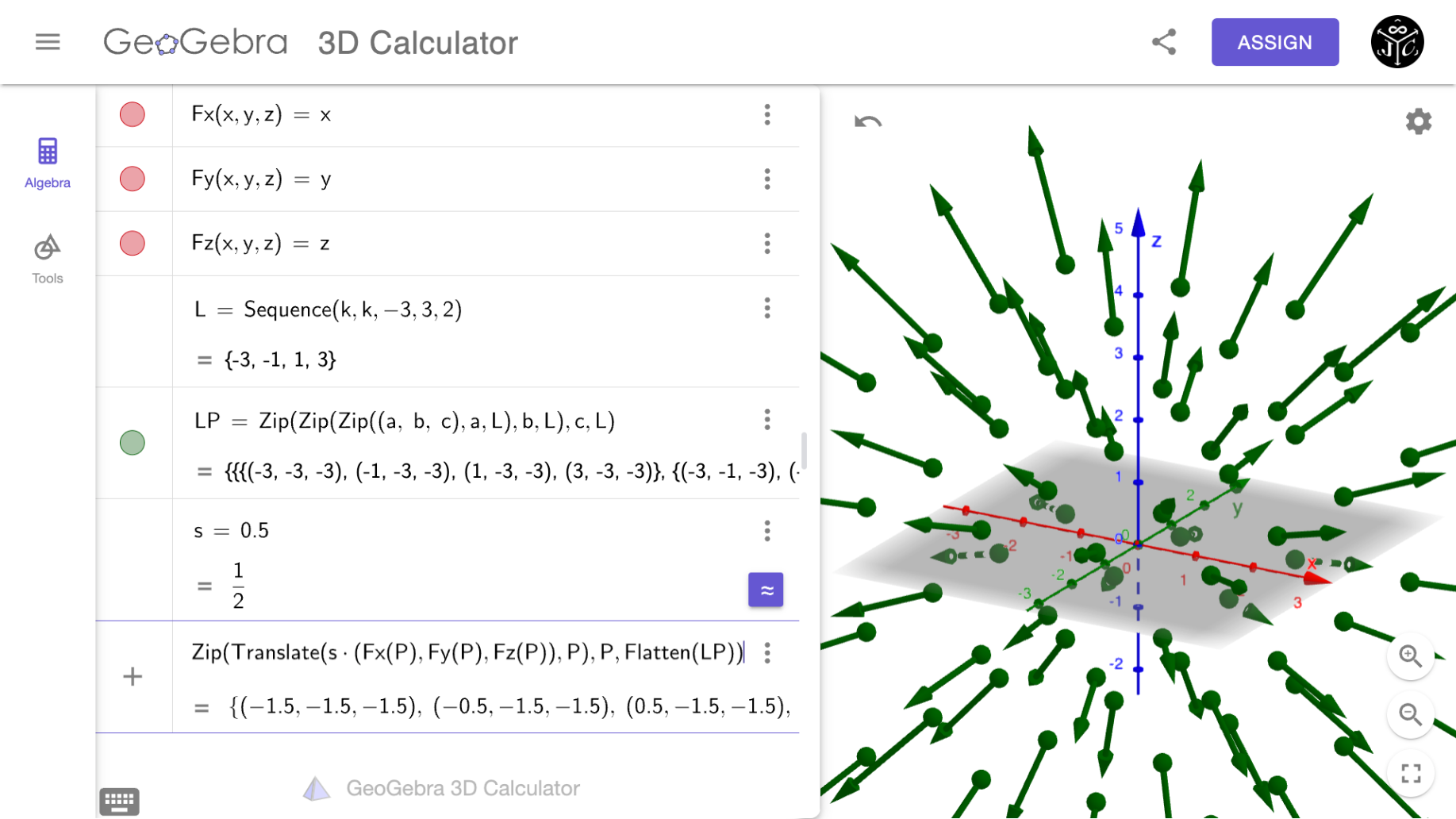 VF = Zip(Translate(s*(Fx(P), Fy(P), Fz(P)), P), P, LP)Script 1