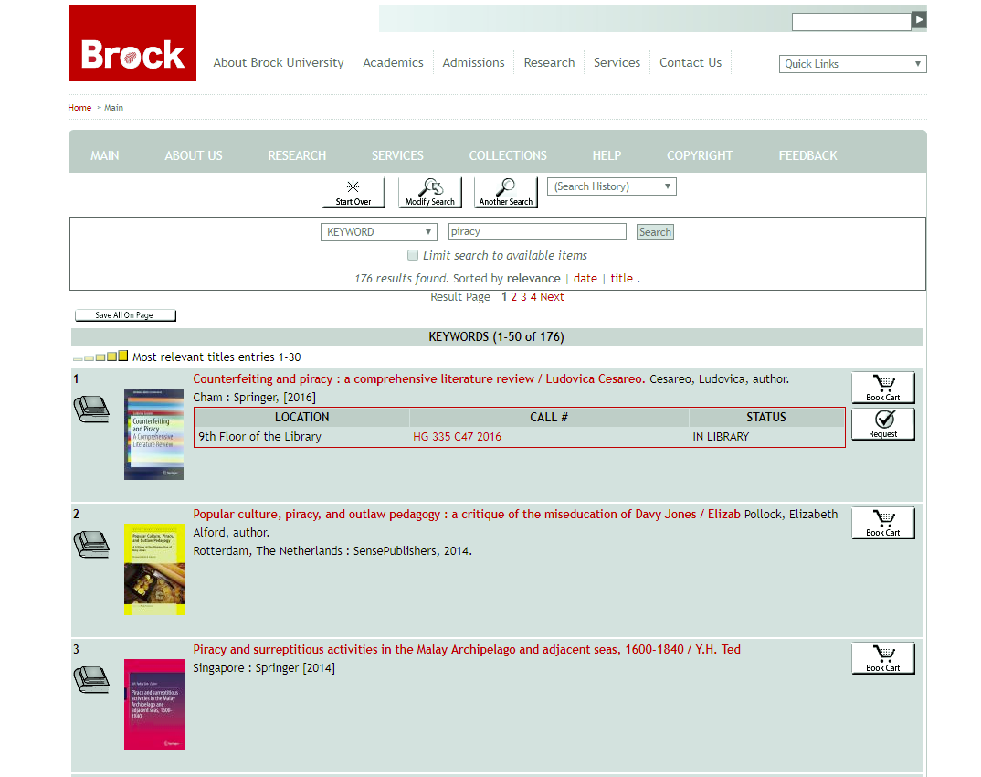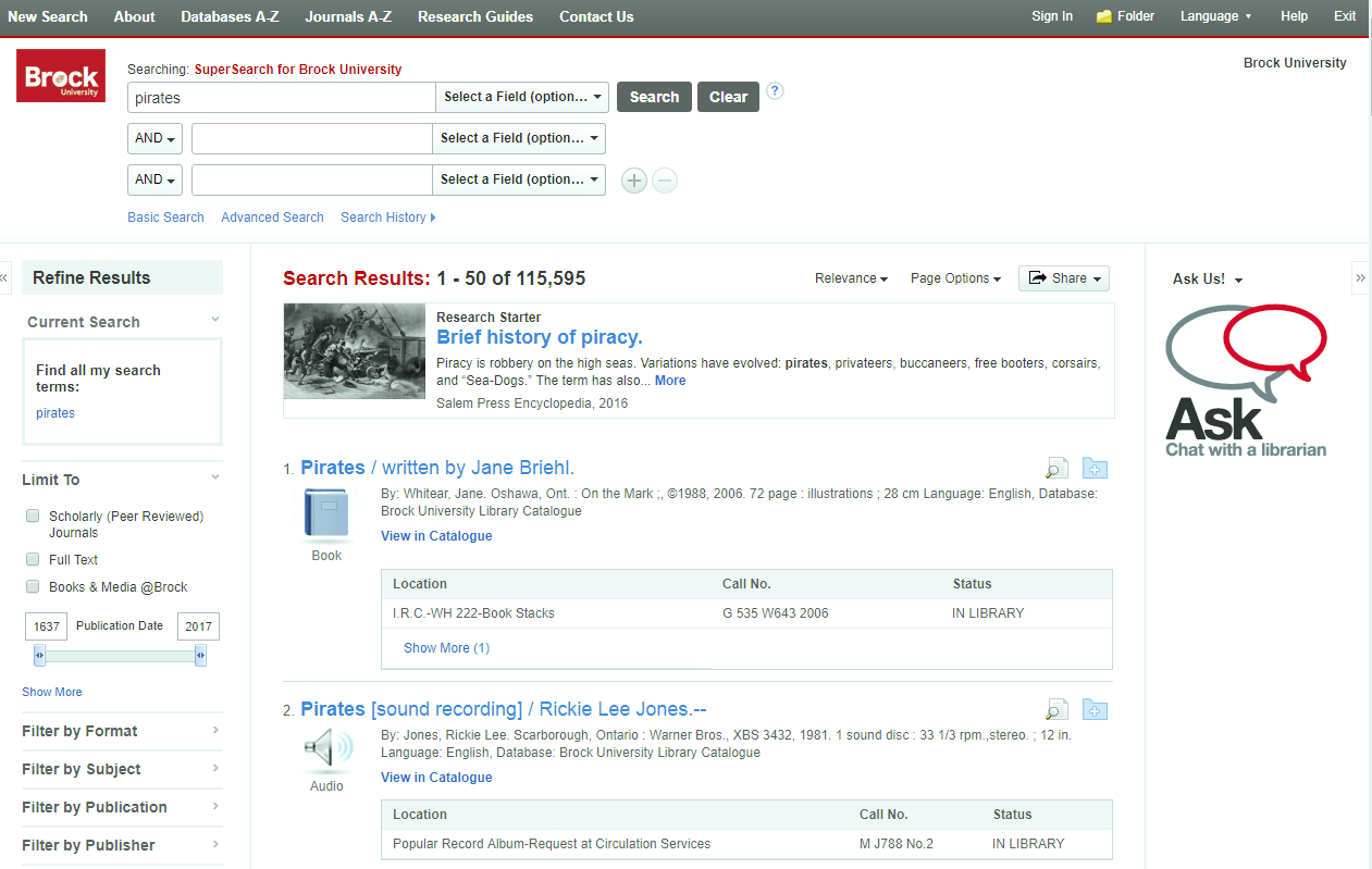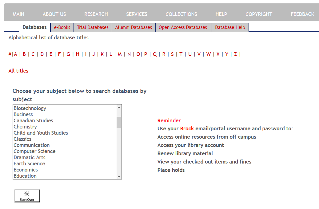 Start at the library homepage: brocku.ca/library