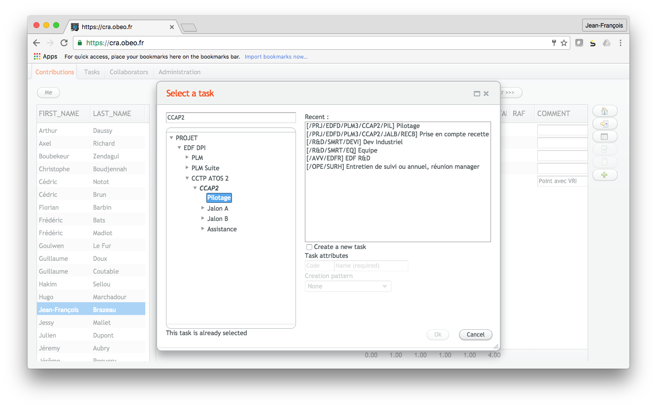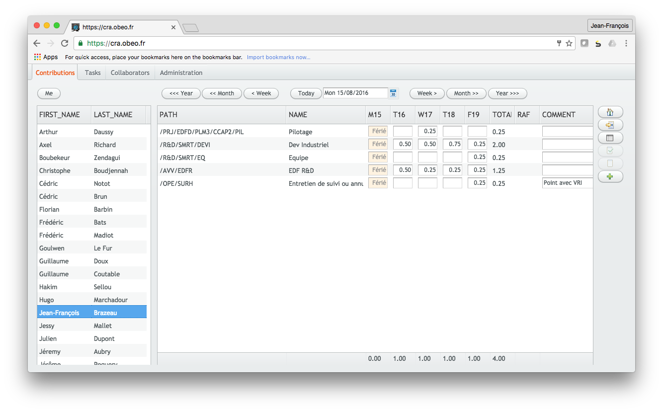 Jusqu'à aujourd'hui, le CRA web = ajout dans la chaine de remontée de l'activité des collaborateurs