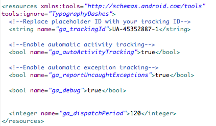 Criar o XML com as configs do GA