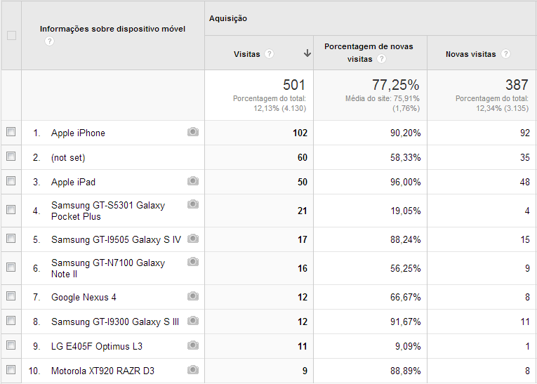 Informações sobre aparelhos utilizados