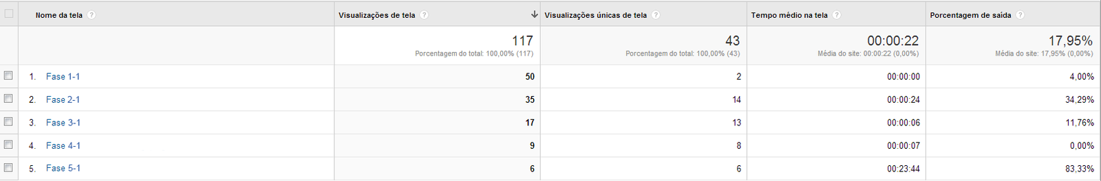 Fases acessadas