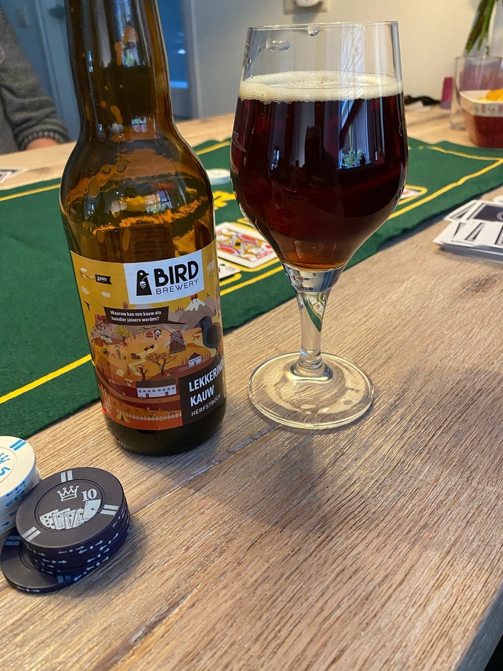 Lekker in de Kauw van Bird Brewery is een Herfstbok. Dit bier bevat een mix van karamel, herfstfruit en lichte hopbitters. Van Lekker in de Kauw krijg je het dus zeker heerlijk warm!