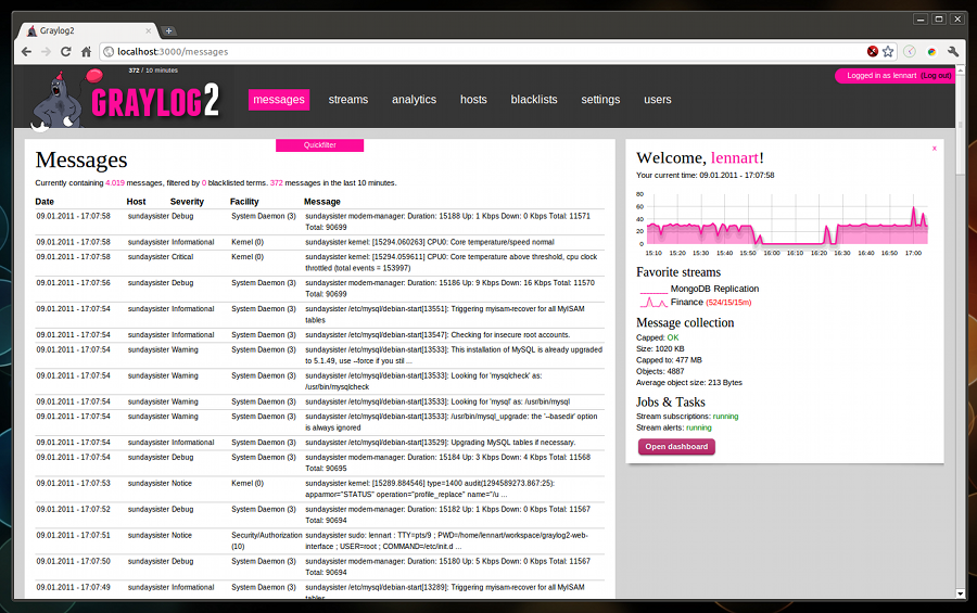 Tableau de bord Graylog2