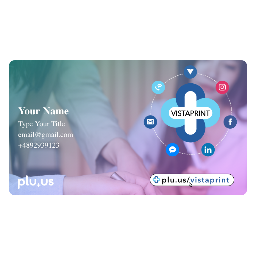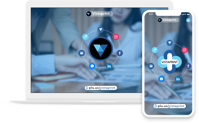 Incrustation d’un lien Plu.us/Vistaprint sur la carte de visite afin de partager l’univers digital de Vistaprint avec un simple URL