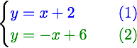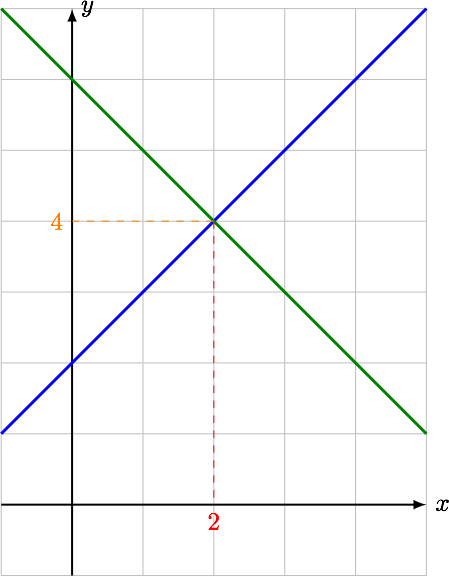 Ekvationssystemets lösning kan avläsas från linjernas skärningspunkt.