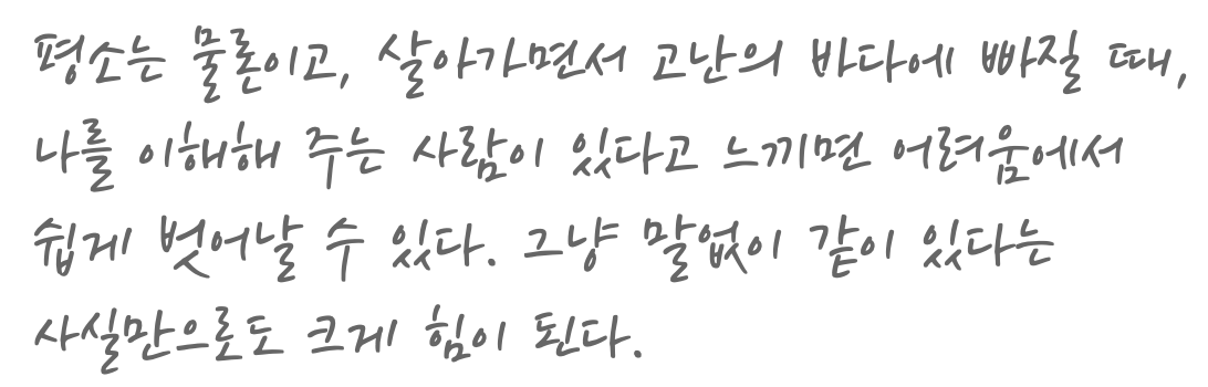 낮에 일하면서 아무리 많은 사람과 즐겁게 웃으며 어울린다고 해서 고독하지 않은 것은 아니다. 나와 그들 사이에 마음과 마음으로 이어지는 진정한 만남이 없으면 모두 허황된 것, 외로움을 면할 수 없다.