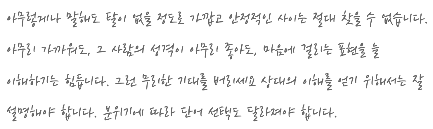 내가 지금 말이 통한다고 느껴지는 상대가 있는데 그 사람과 내가 정말로 말이 잘 통하는 것일까? 내가 하는 말에 단순히 상대가 잘 동의하고 이야기 해주는 것을 내가 스스로 말이 통한다고 착각하는 것은 아닐까?