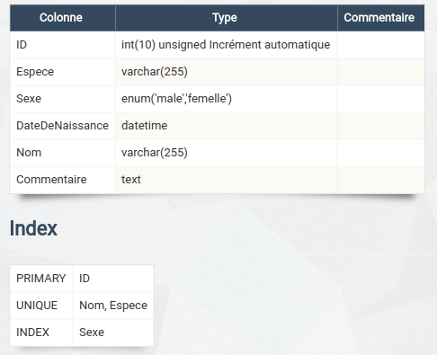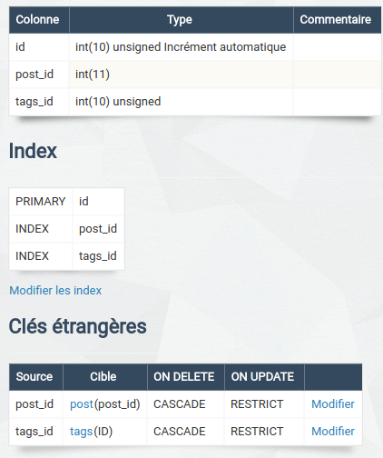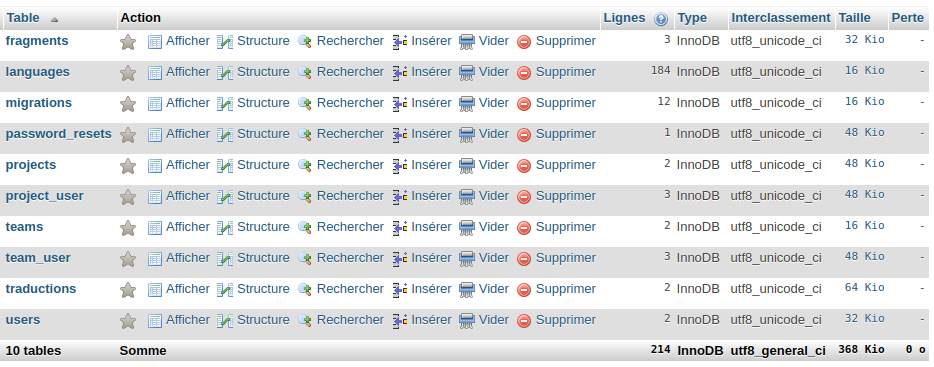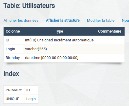 - Pas de php, uniquement via l'interface PHPMyAdmin