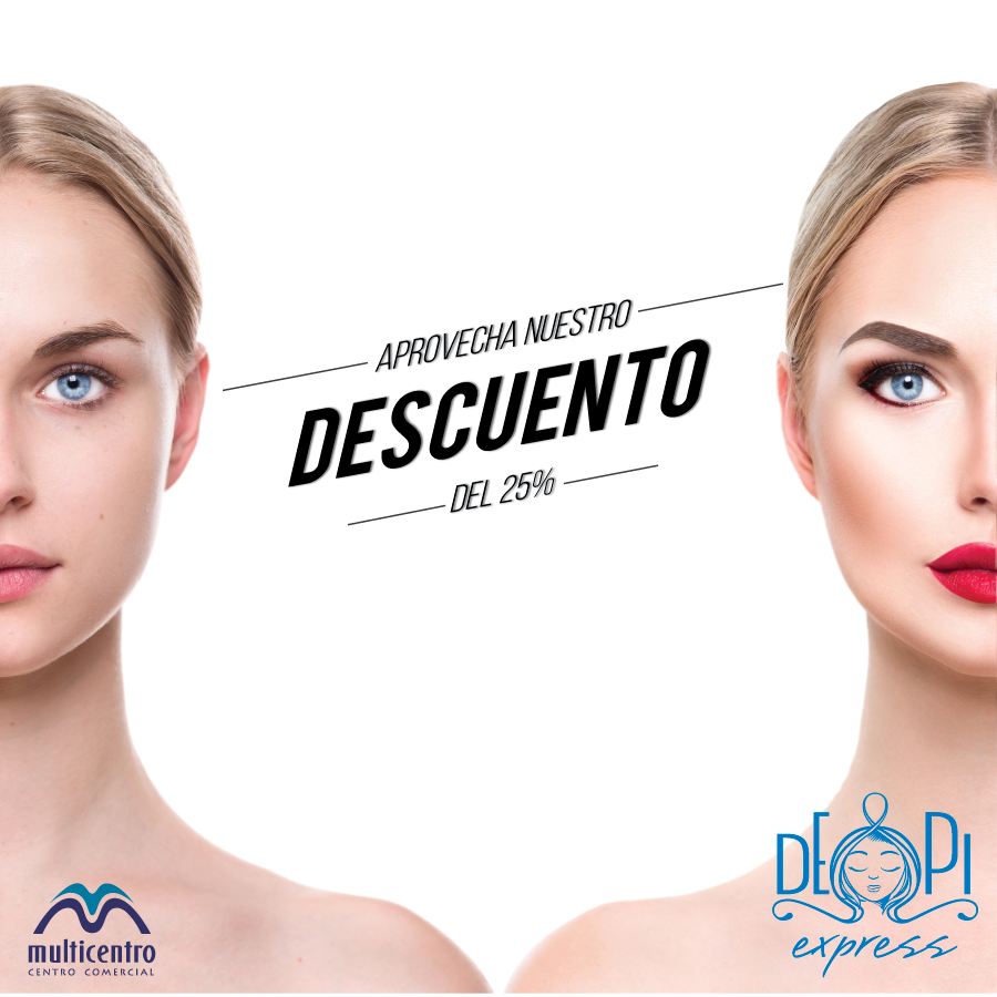 Depi Express te trae la promoción que tanto estabas esperando, Ven al Multicentro por tu depilación de cejas y bozo y recibe 25% de descuento en un maquillaje profesional. No dejes pasar esta oportunidad de oro y aprovechala ¡YA!.