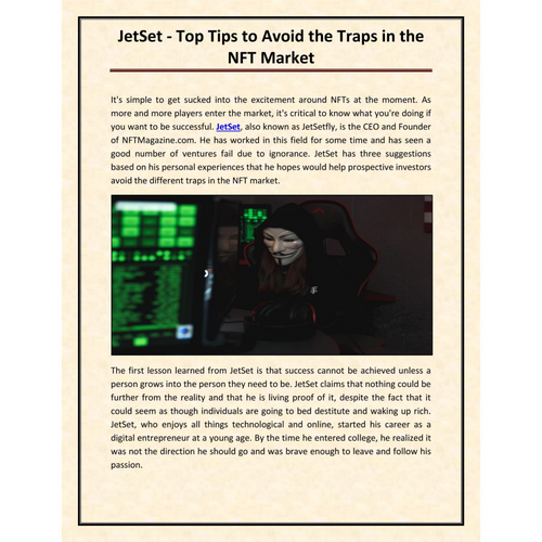 It's simple to get sucked into the excitement around NFTs at the moment. As more and more players enter the market, it's critical to know what you're doing if you want to be successful. JetSet, also known as JetSetfly, is the CEO and Founder of NFTMagazine.com. He has worked in this field for some time and has seen a good number of ventures fail due to ignorance. JetSet has three suggestions based on his personal experiences that he hopes would help prospective investors avoid the different traps in the NFT market.
