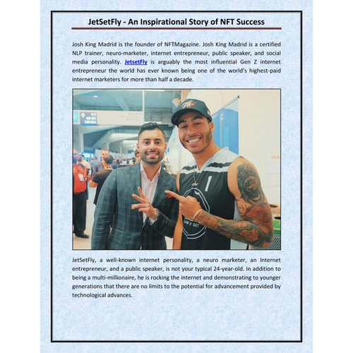 JetSetFly, a well-known internet personality, a neuro marketer, an Internet entrepreneur, and a public speaker, is not your typical 24-year-old. In addition to being a multi-millionaire, he is rocking the internet and demonstrating to younger generations that there are no limits to the potential for advancement provided by technological advances.