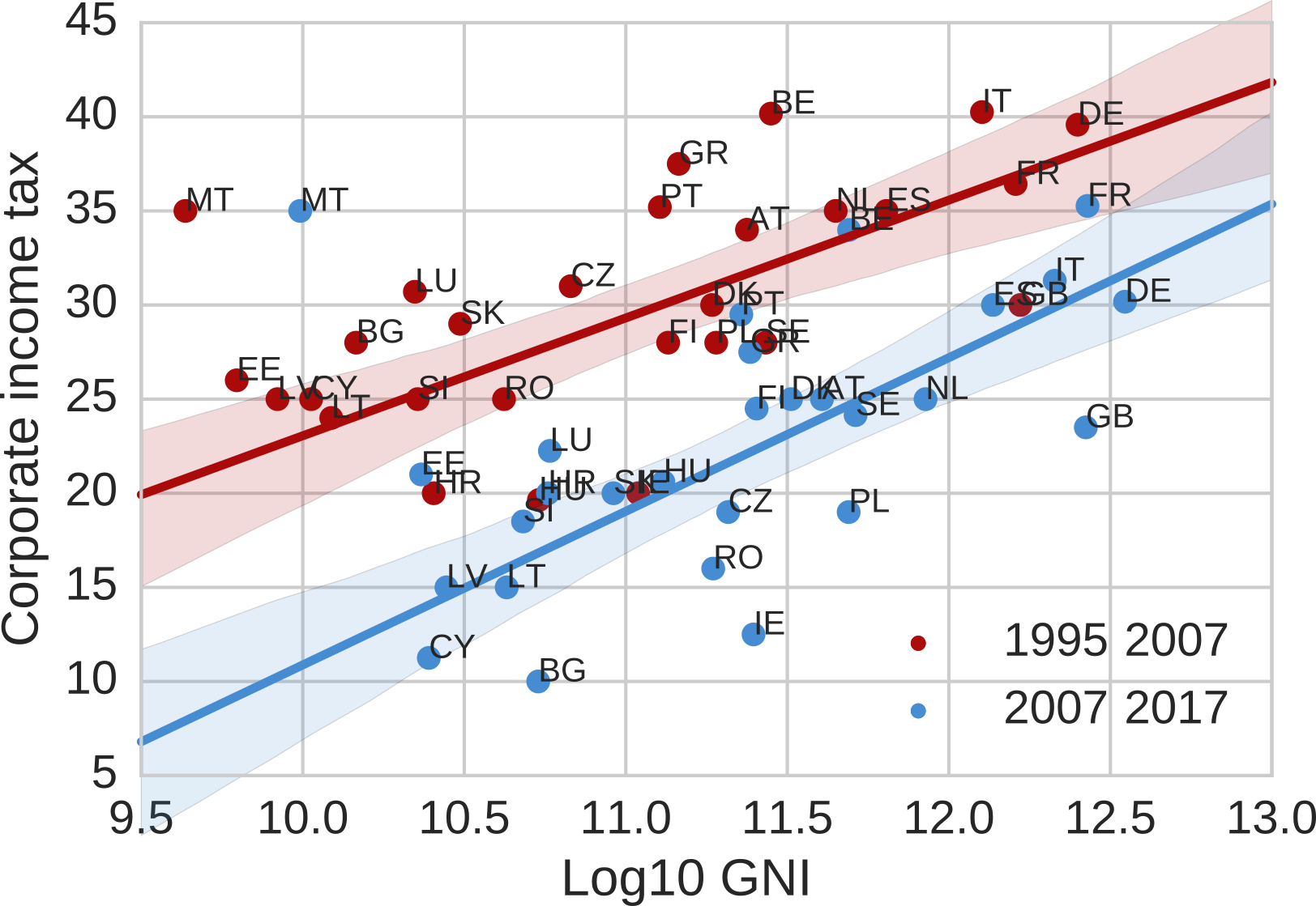 - Small countries have higher incentives, but also some other countries can gain a comparative advantage from reducing taxes. For the case of CIT: