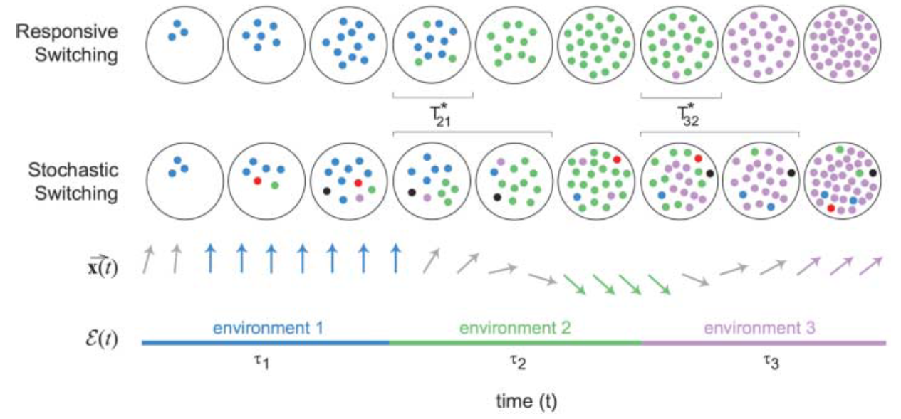 - Noise and low-level fluctuations in an upstream regulator are able to coordinate the response without adding cost to the population.
