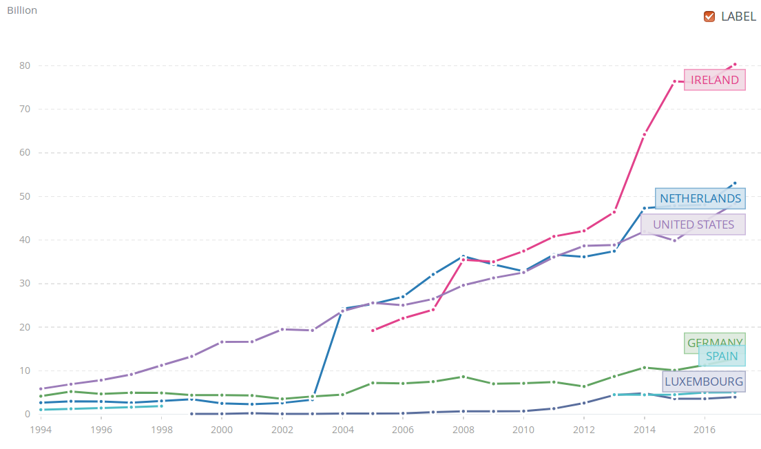 Companies have large incentives and little restrictions to move profits to low-tax jurisdictions