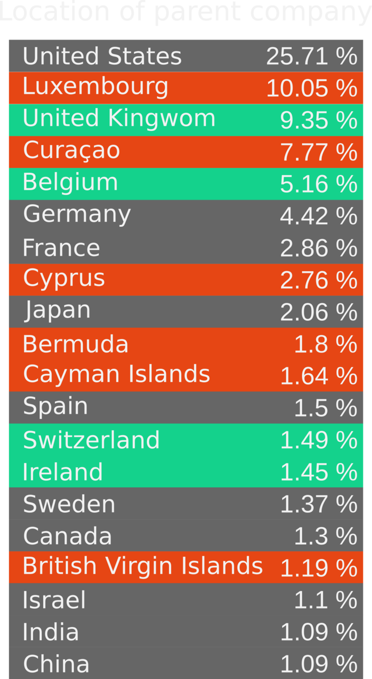 - Sink-OFCs are connected to the United Kingdom (except Luxembourg).