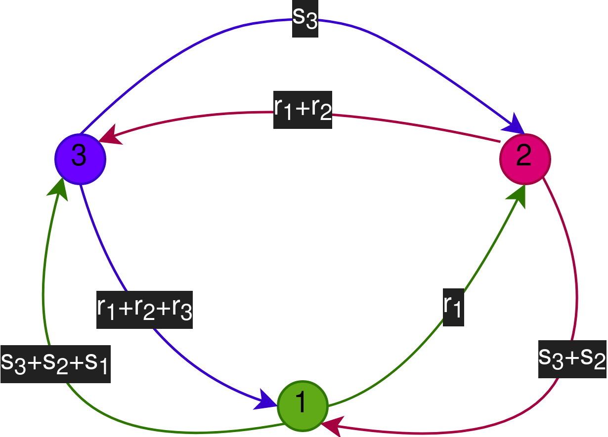 \(P_3\) знает: \(s_3\), \(r_3\), \(r_1+r_2\), \(s_1+s_2+s_3\)