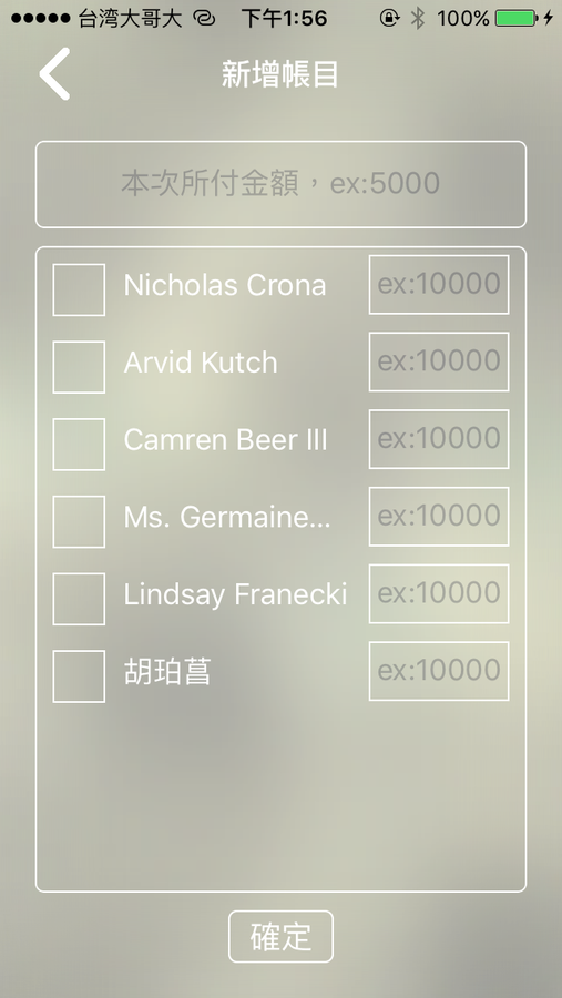 若自己的餘額為負債,可以在此畫面點選其他無負債的使用者,並填入還款金額。