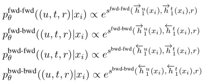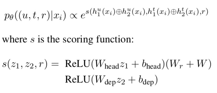 The bilinear classifier uses a weight matrix Wr specific to the candidate relation as well as a weight matrix W shared across all relations.