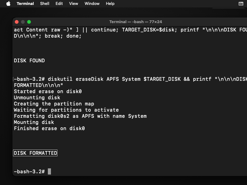 bot.type_text('systemsetup -setremotelogin on && echo printf "\\n\\n\\nDONE\\n\\n\\n"')