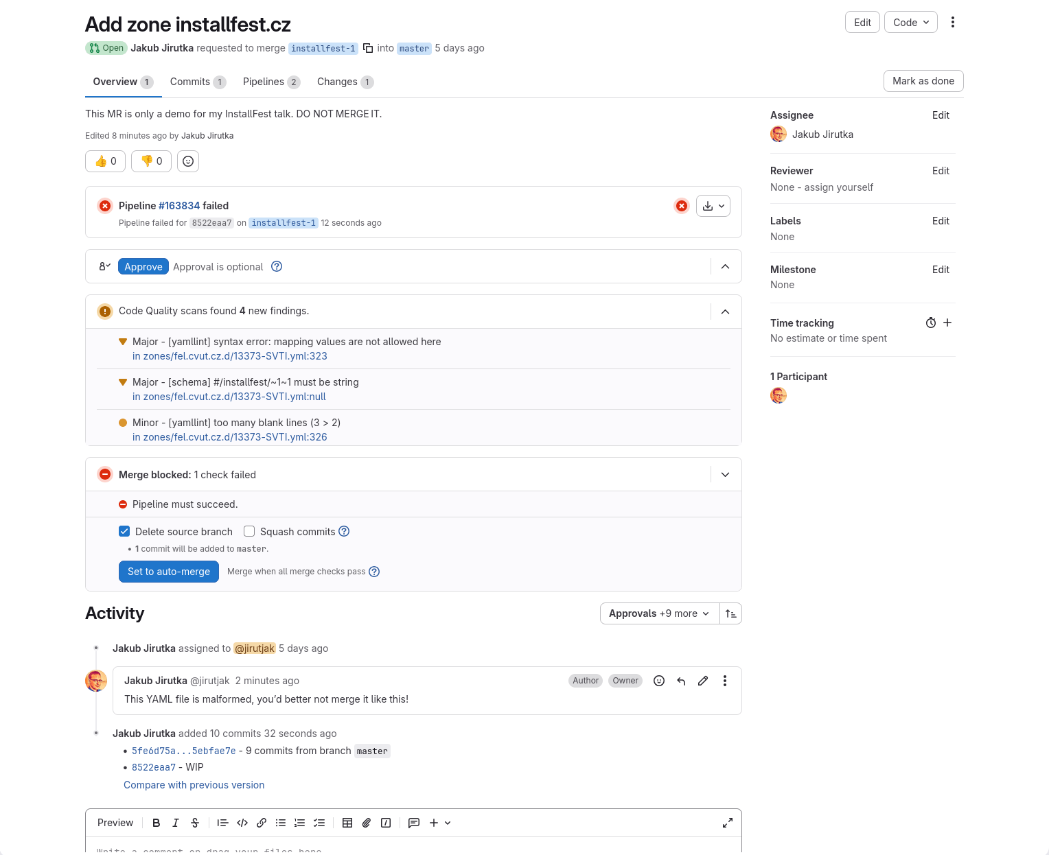 - Requires some elementary knowledge of git, GitLab, YAML, text editing.