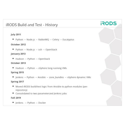 TRiRODS May 2020 - iRODS Build and Test Infrastructure