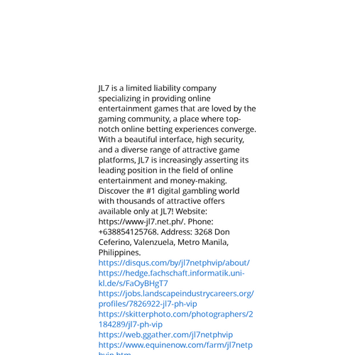 Website: https://www-jl7.net.ph/. JL7 is a limited liability company specializing in providing online entertainment games that are loved by the gaming community, a place where top-notch online betting experiences converge. With a beautiful interface,