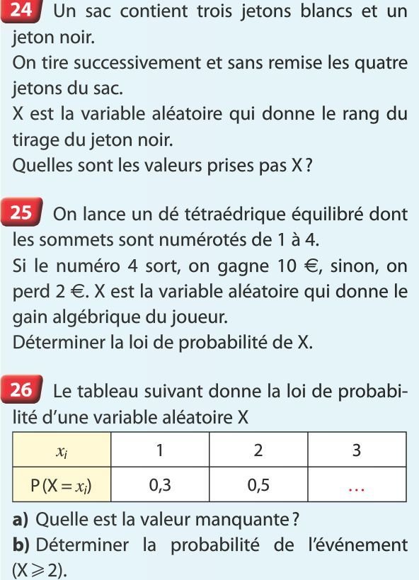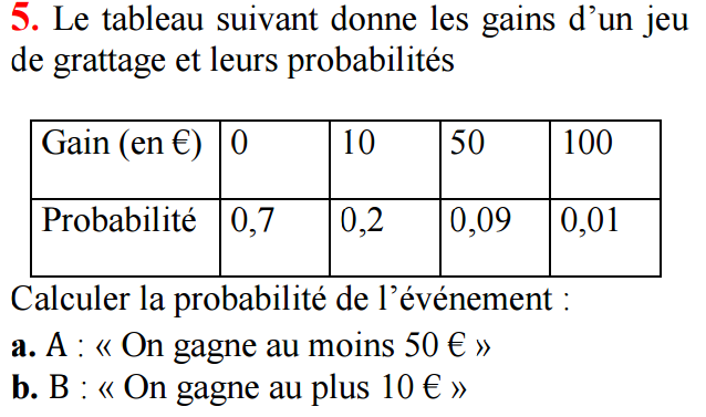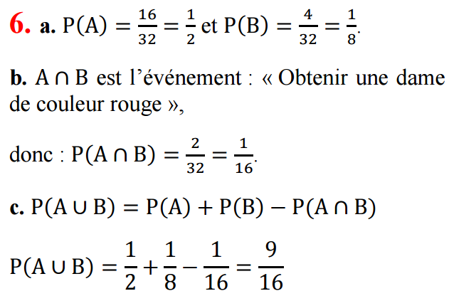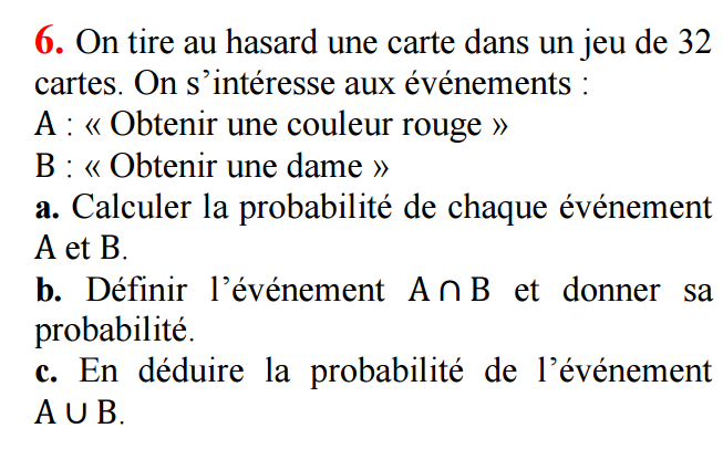 4. On tire au hasard une carte dans un jeu de 32 cartes et on note sa valeur. Calculer la probabilité de chacun des événements :