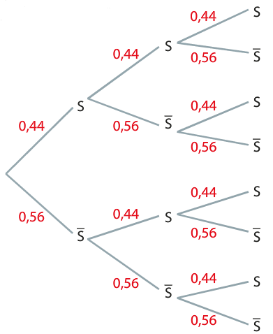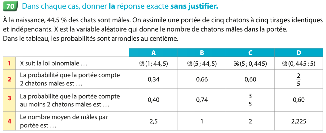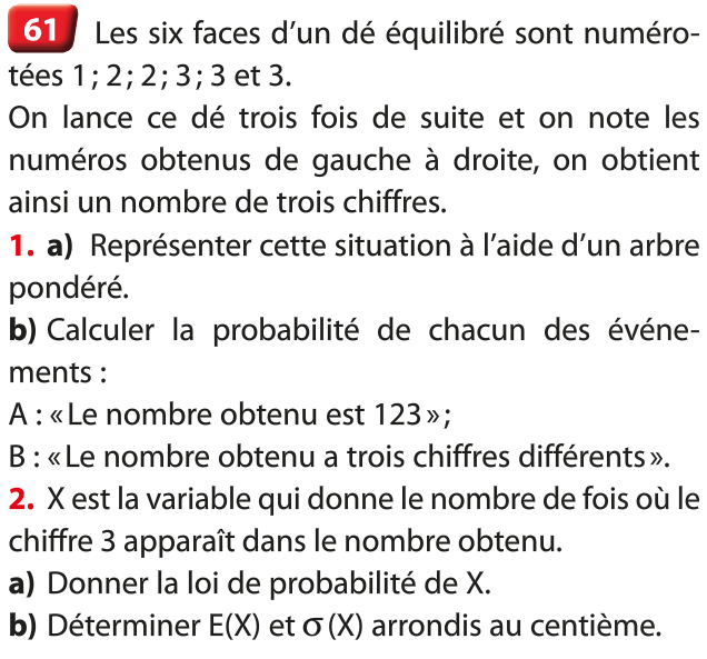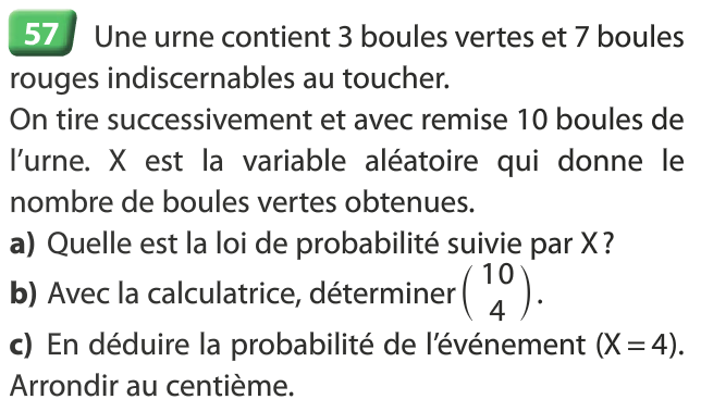 Il semble que l’on puisse modéliser cette expérience aléatoire par les probabilités données en b.
