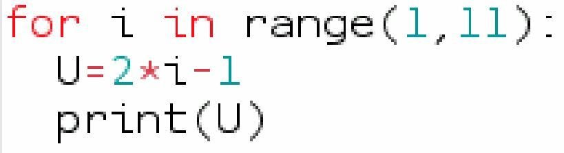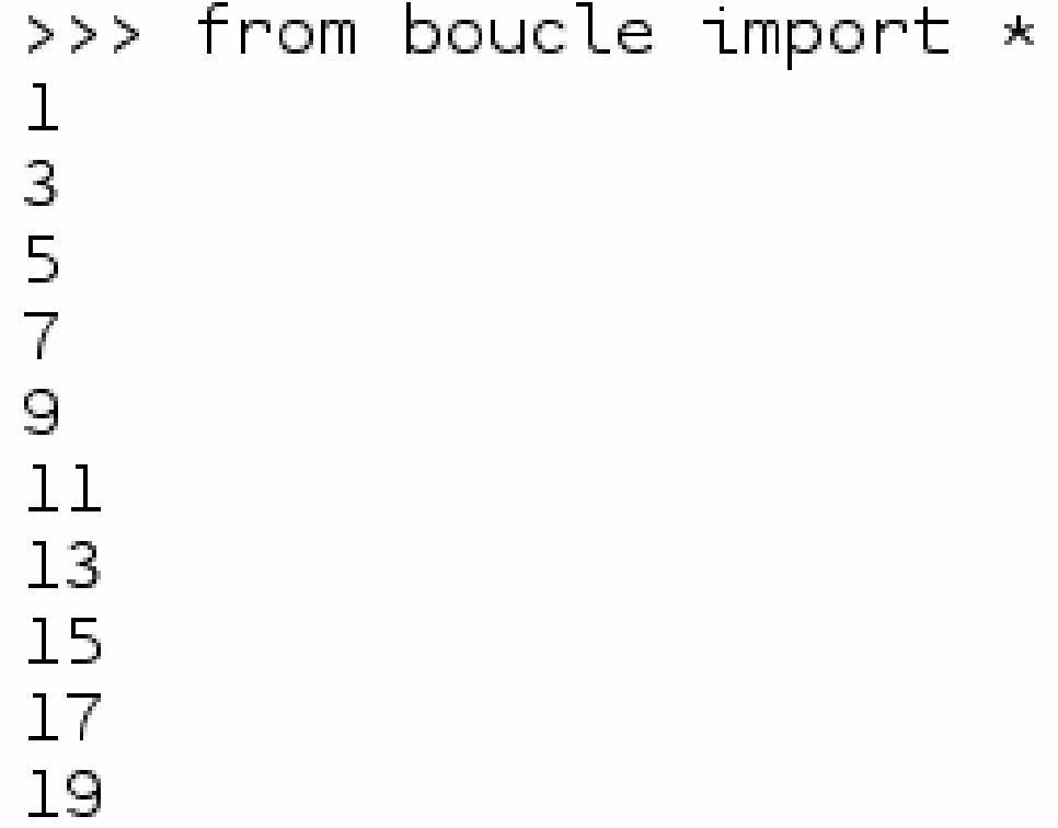 L'algorithme affecte successivement à la variable U les nombres 1, 3, 5... 17, 19.