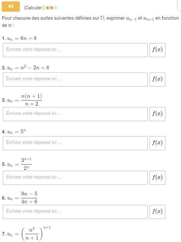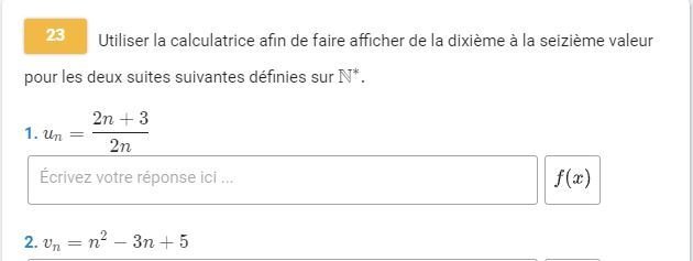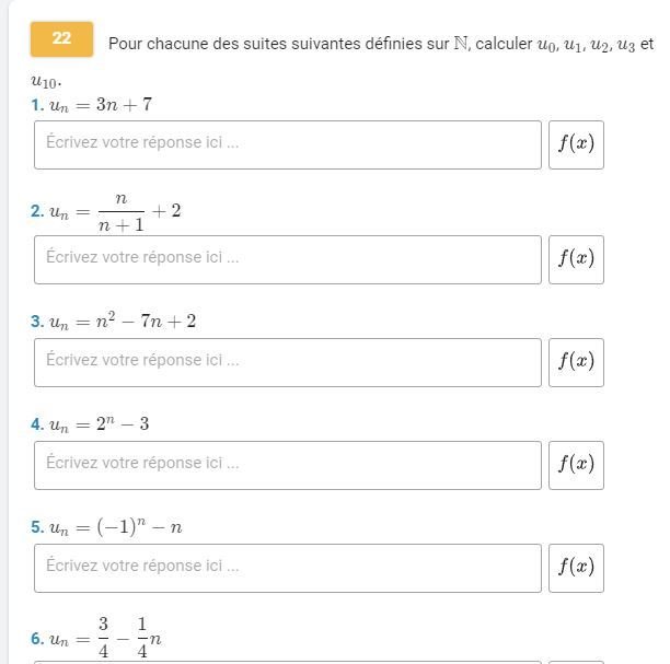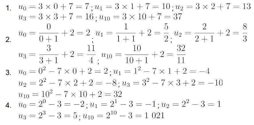 EX 1 : Dans chaque cas calculer les termes de u0 à u5 (Suites définie par une formule explicite) :