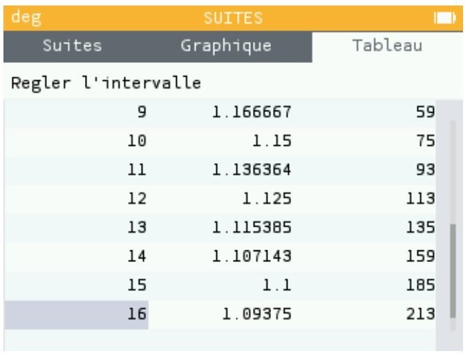 Les termes de u1 à u10 d'une suite définie par récurrence dont le premier terme est u0 = 1.
