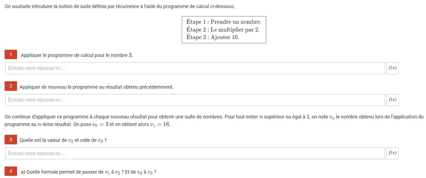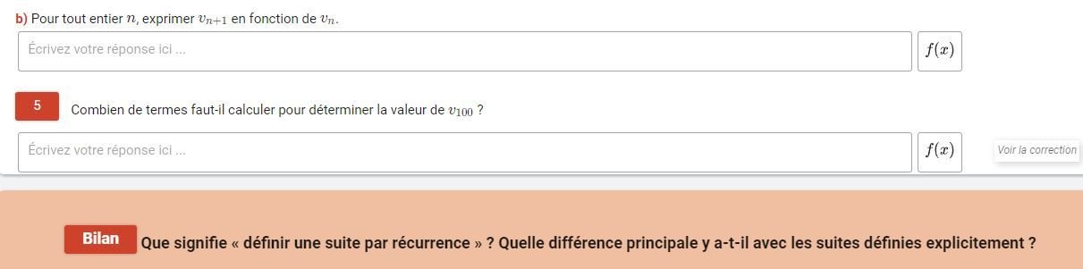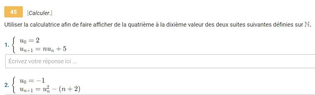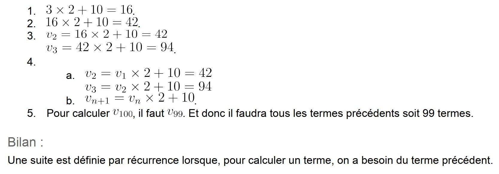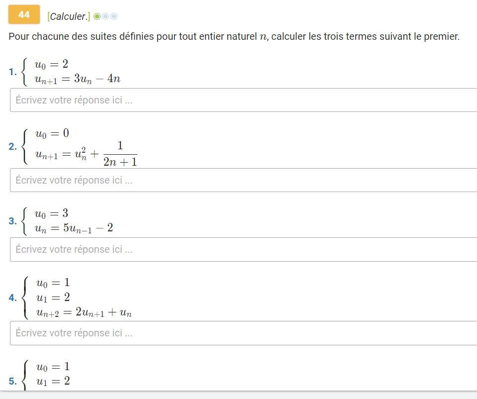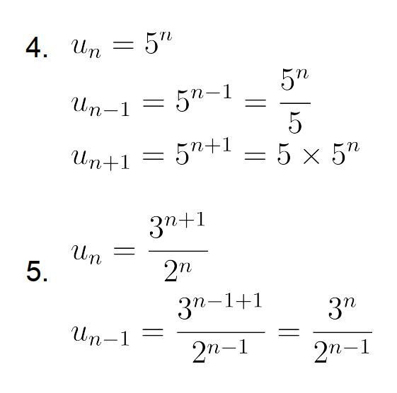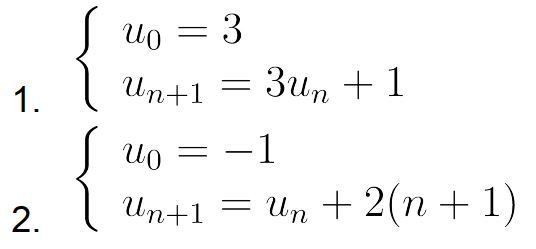 EX 3 : Dans chaque cas calculer les termes de u1 à u5 (Suites définie par une relation de récurrence) :