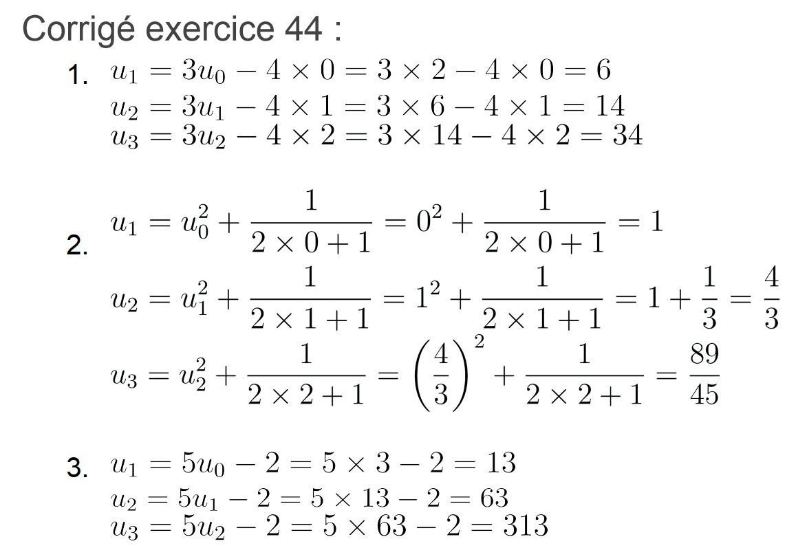 EX 5 : Calculer les termes de (u2) à (u4) dans les deux cas suivants :