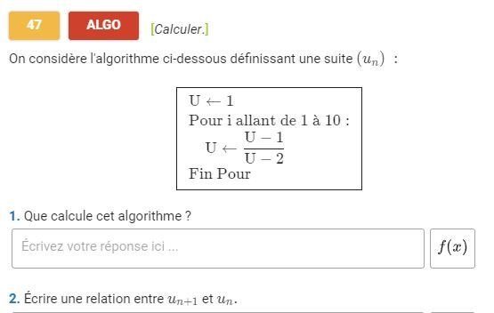 Question supplémentaire : Programmer l'algorithme en Python avec affichage de \(u_{10}\)