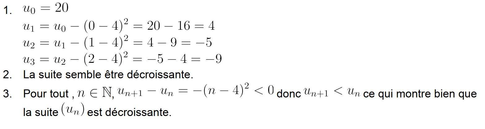 On en déduit que pour tout entier naturel \(n\), \(u_n<3\) .
