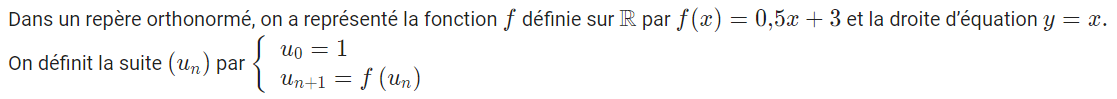 1. Reproduire la figure et représenter les cinq premiers termes de la suite sur l’axe des abscisses.