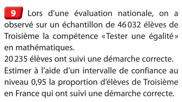 Cela signifie que pour 95% des échantillons de taille 50 la fréquence d'apparition du 6 appartient à l'intervalle I.