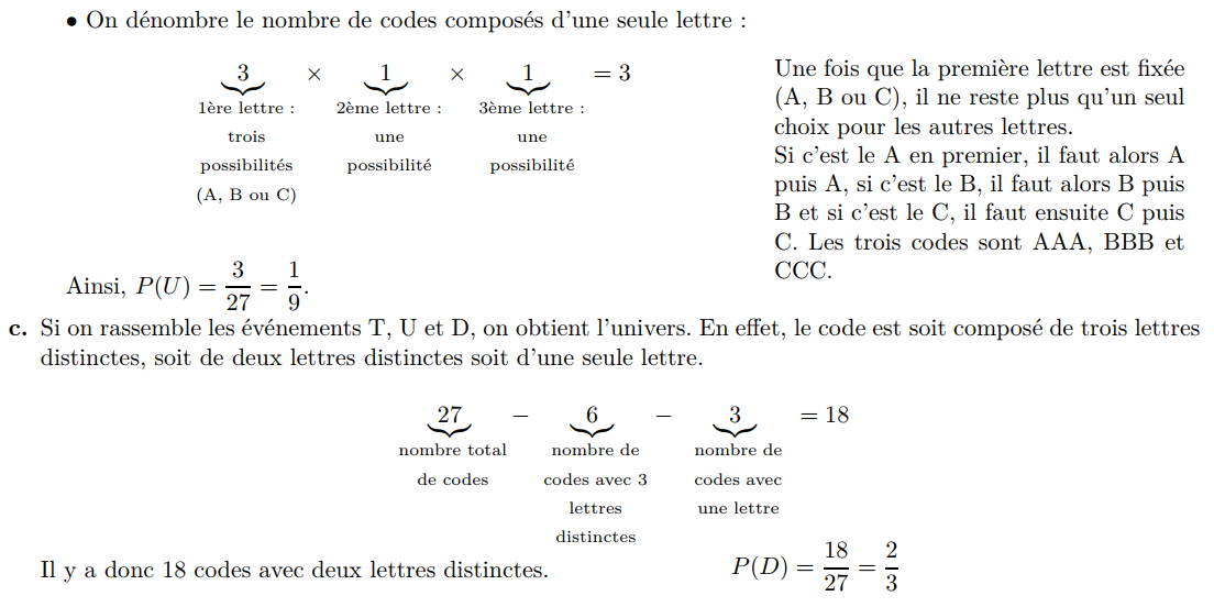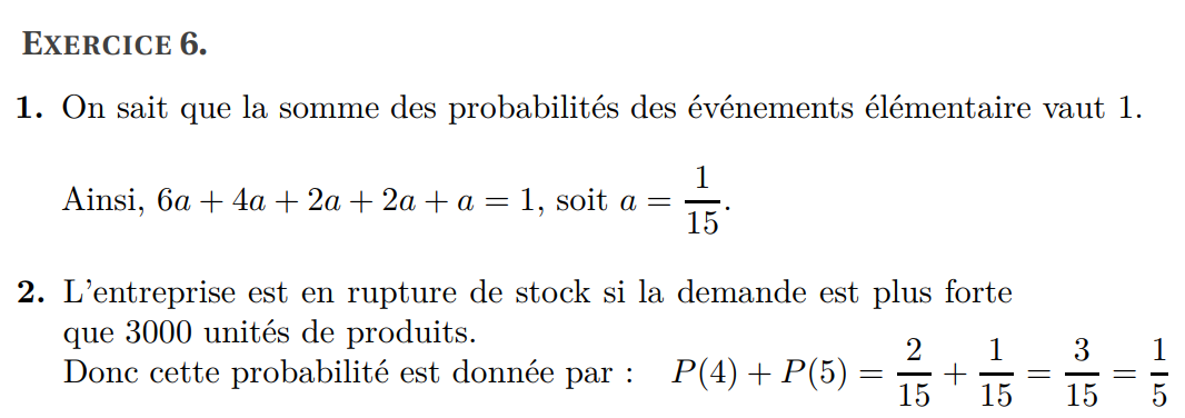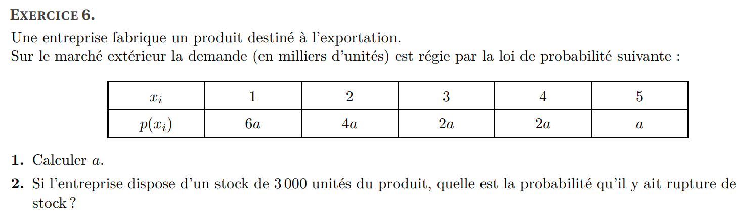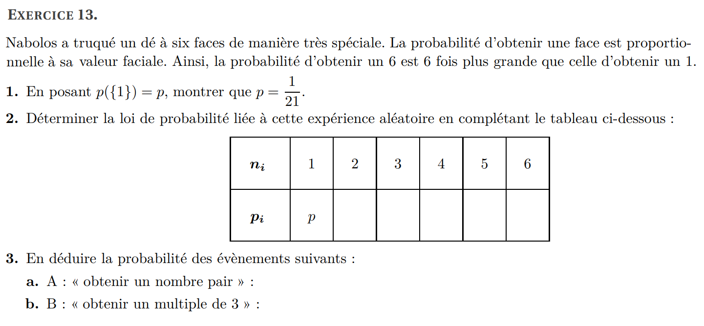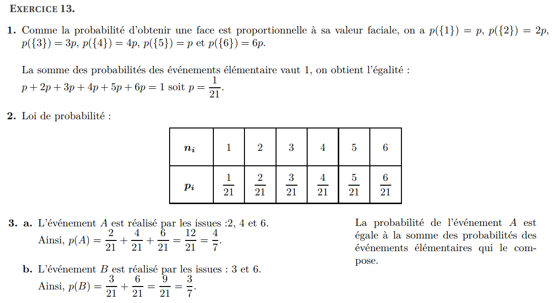(b) Déterminer la probabilité de l’événement A (on la notera p (A)).