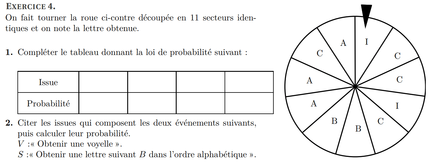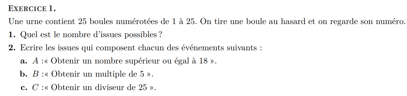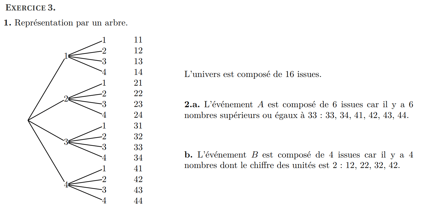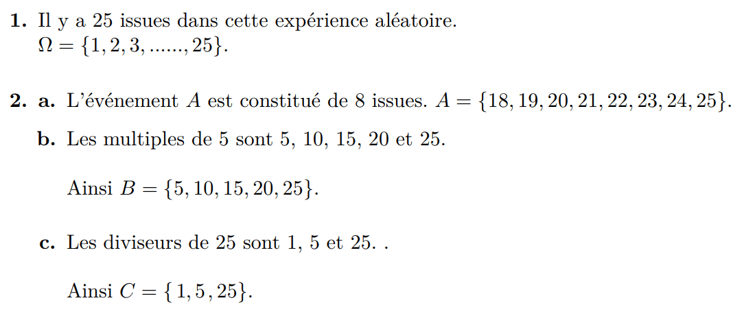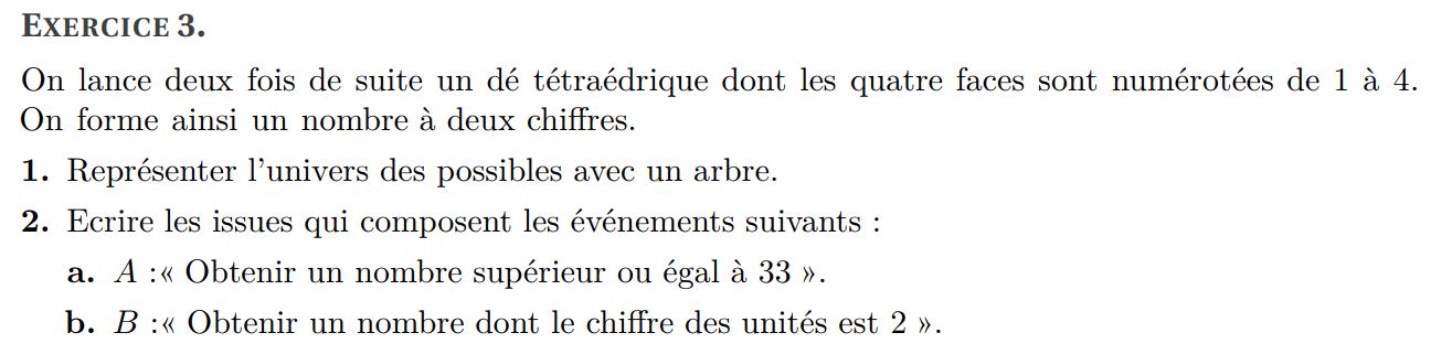 (b) Donner la liste des issues de l’événement