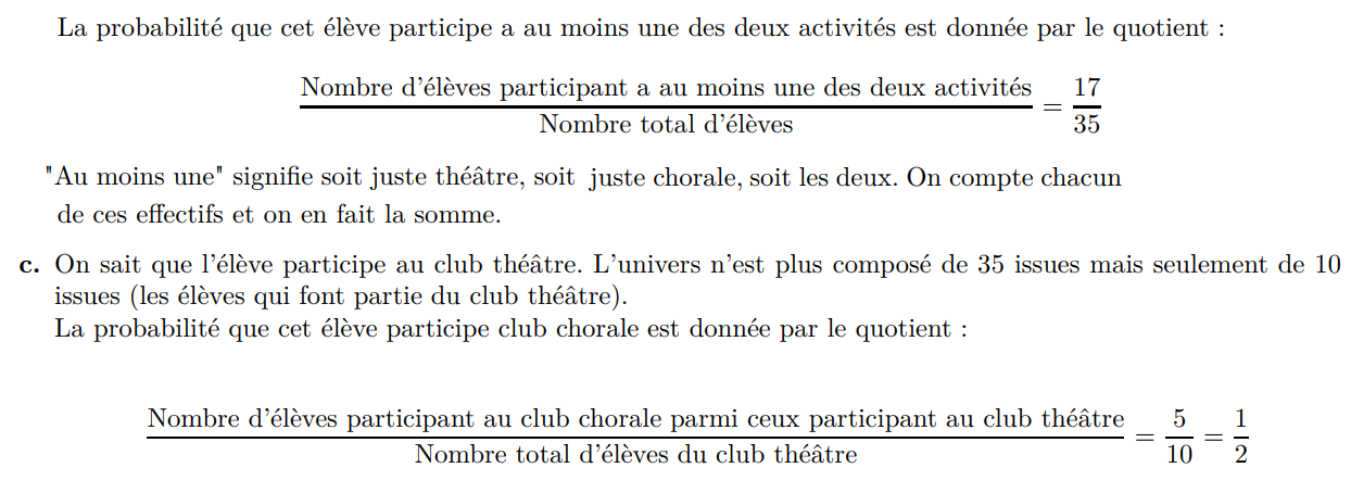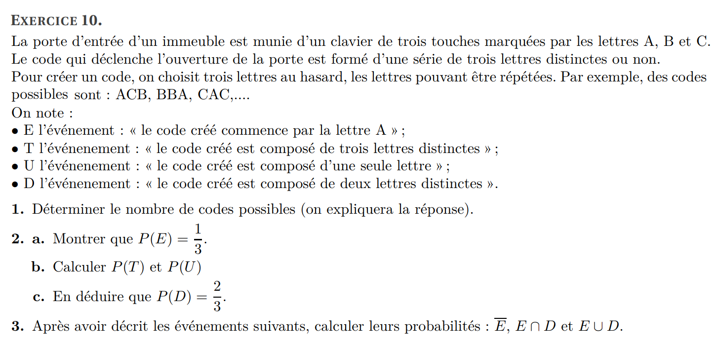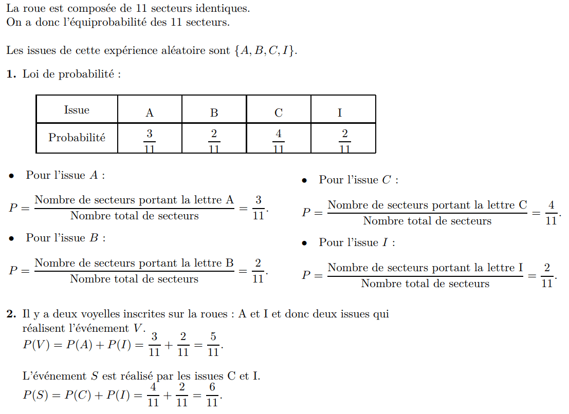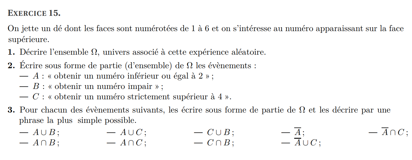 (b) Donner la liste des issues de l’événement