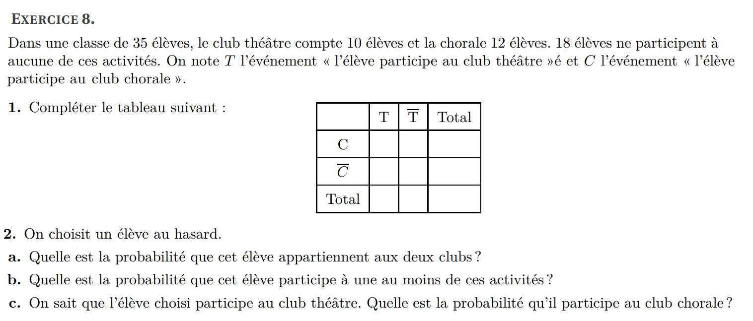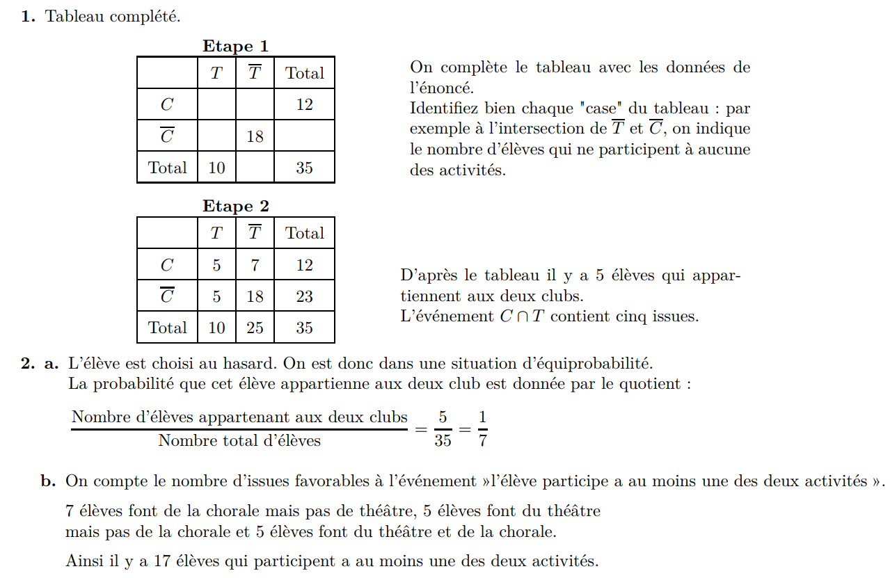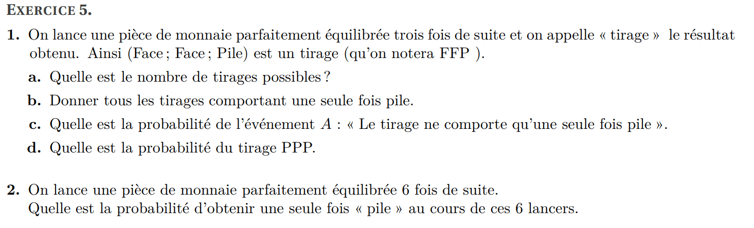 (a) Donner la liste des issues de l’événement