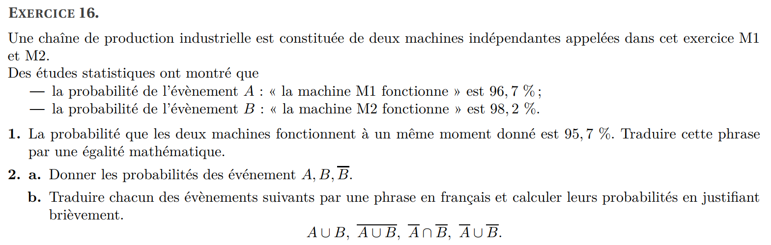 (b) Déterminer la probabilité de l’événement B