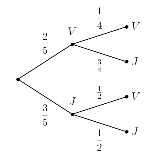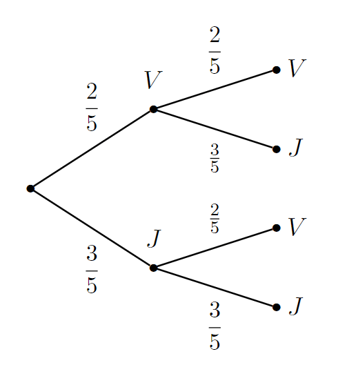 2) On tire, successivement et sans remise, deux boules dans une urne qui contient deux boules vertes et trois boules jaunes.
